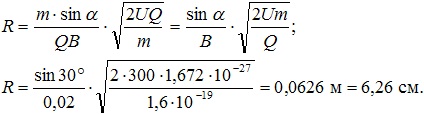Определим скорость v. Протон, прошедший ускоряющую разность потенциалов U, приобретает кинетическую энергию