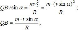 Положительно заряженная частица, имеющая заряд q = 1,6·10–19 Кл со скоростью 1 км/с влетает в однородное магнитное поле с магнитной индукцией 10 мТл под углом 30° к силовым линиям поля и движется по винтовой линии радиусом 3,6 мм. Найти массу частицы.