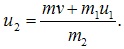 Снаряд массой m = 10 кг обладал скоростью v = 200 м/с в верхней точке траектории. В этой точке он разорвался на две части. Меньшая массой m1 = 3 кг получила скорость u1 = 400 м/с в прежнем направлении. Найти скорость u2 второй, большей части после разрыва.